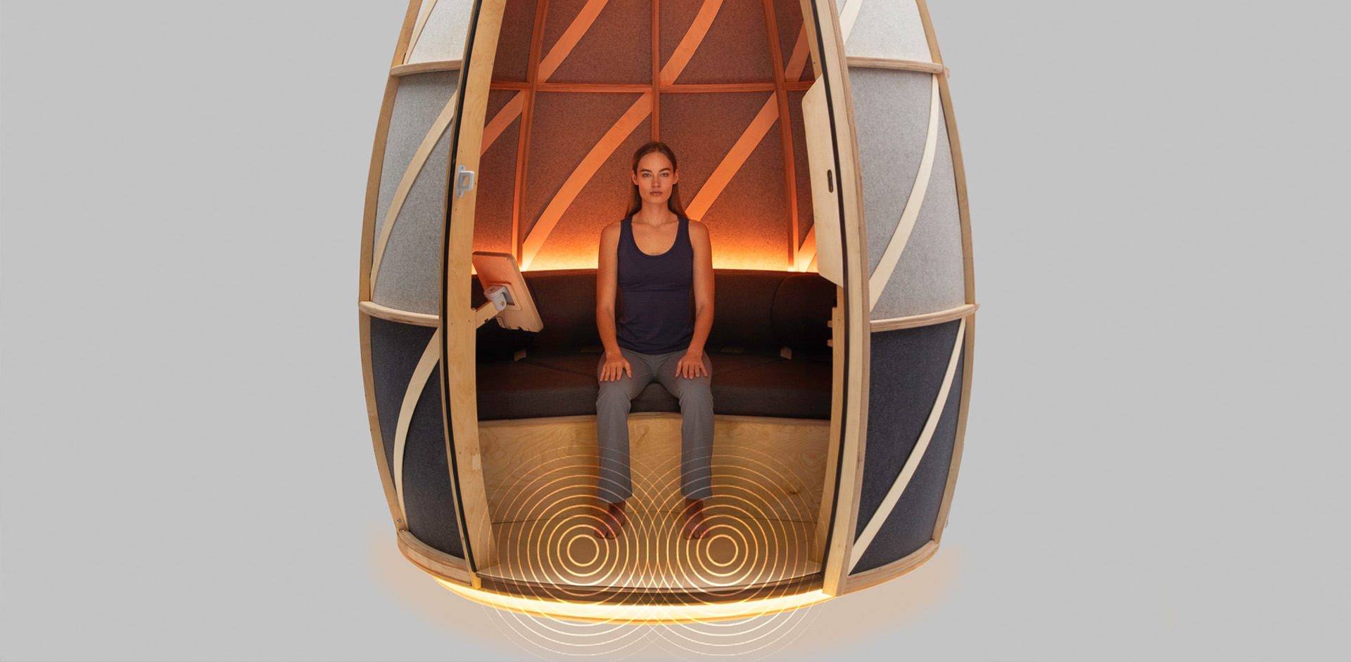 OpenSeed bridges the gap between neuroscience and human-centered design to create environments that nurture calm, focus, and emotional balance. Every element—from the pod’s acoustics and lighting to its materials and ergonomics—is intentionally crafted to support measurable states of relaxation and restoration. Rooted in scientific research on meditation, sound, and light therapy, OpenSeed transforms evidence-based wellness practices into a multisensory experience that is as functional as it is beautiful.