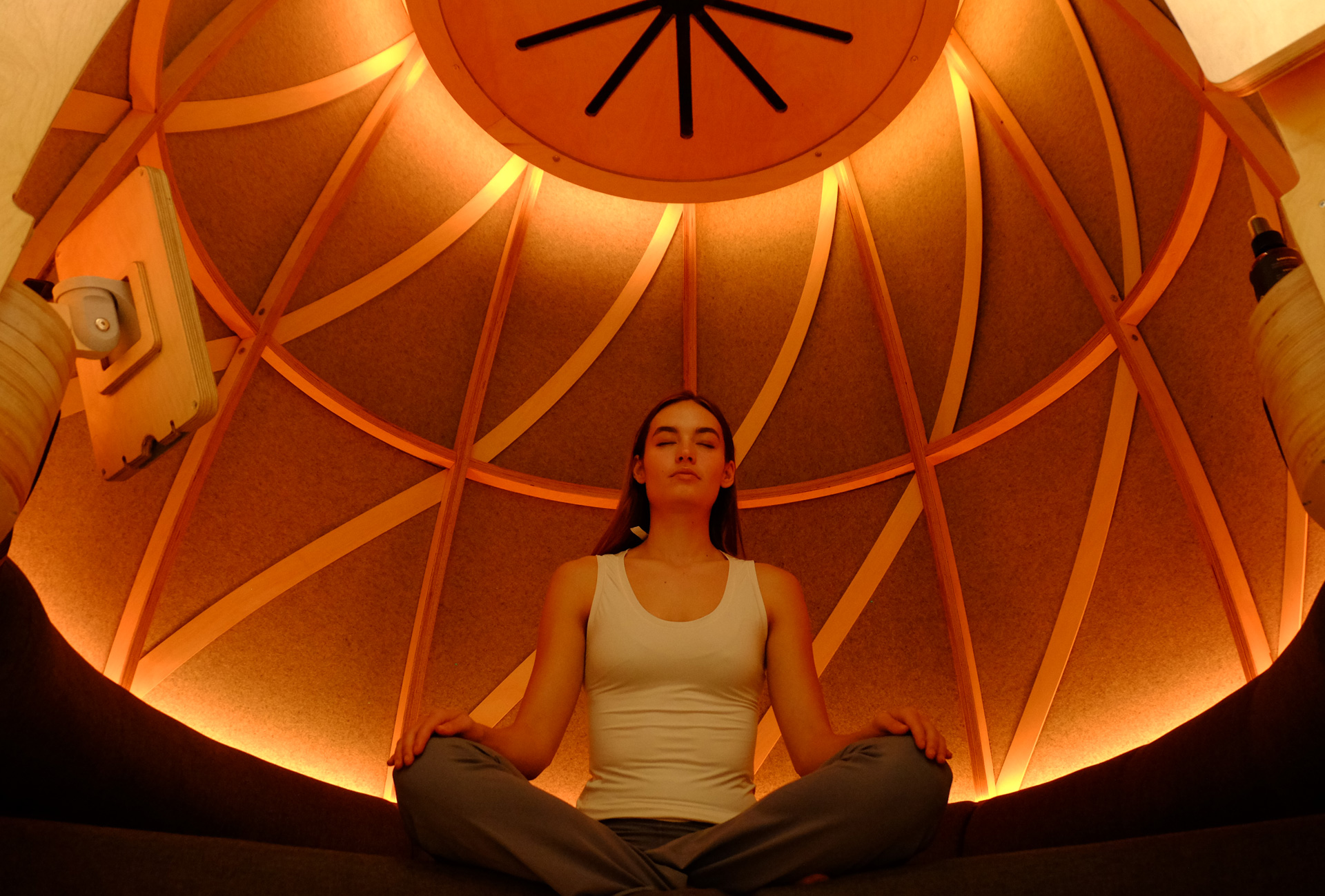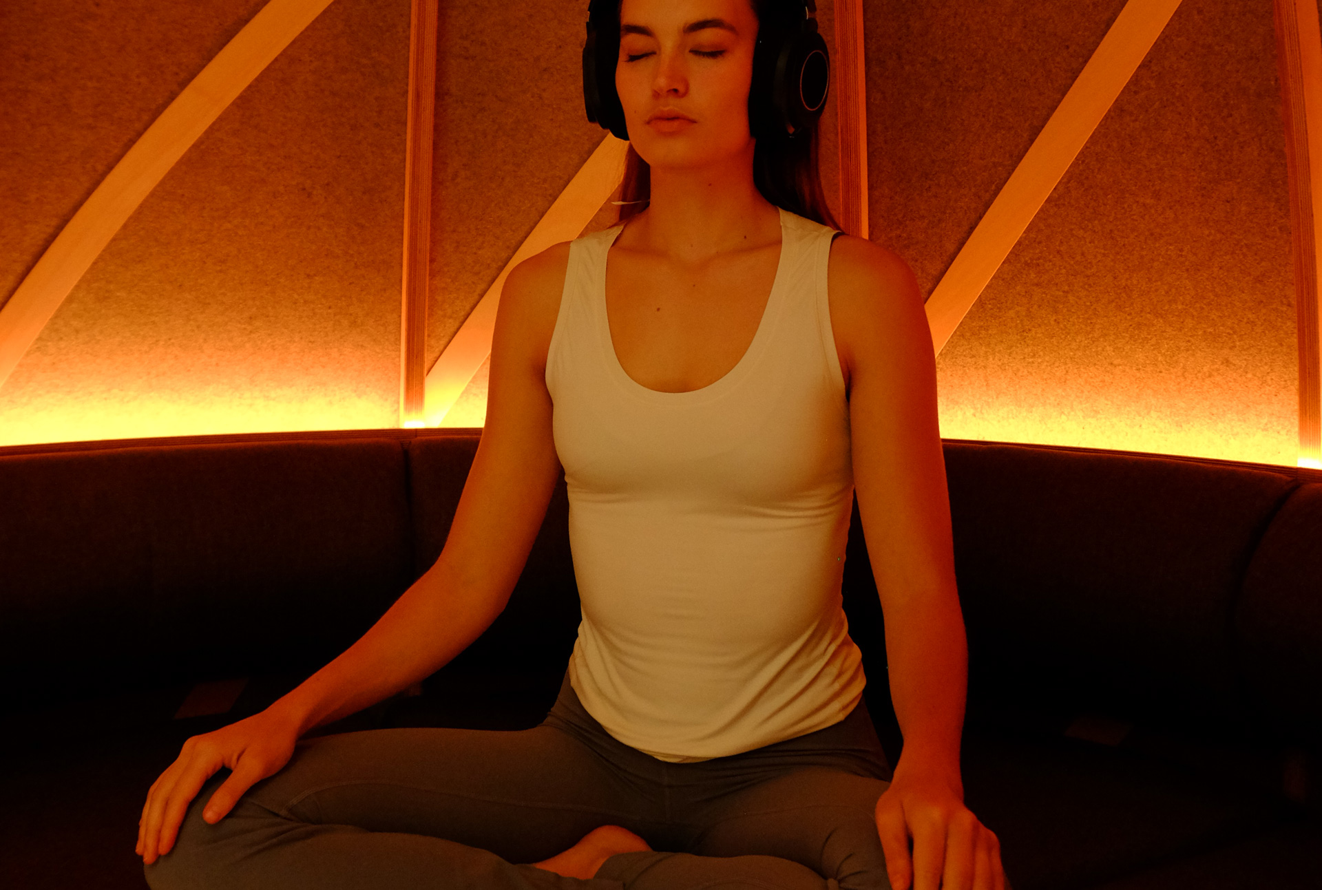 OpenSeed meditation pods use a blend of soundscapes, synchronized light, gentle vibrations, and aromatherapy to create an environment optimized to achieve this objective.