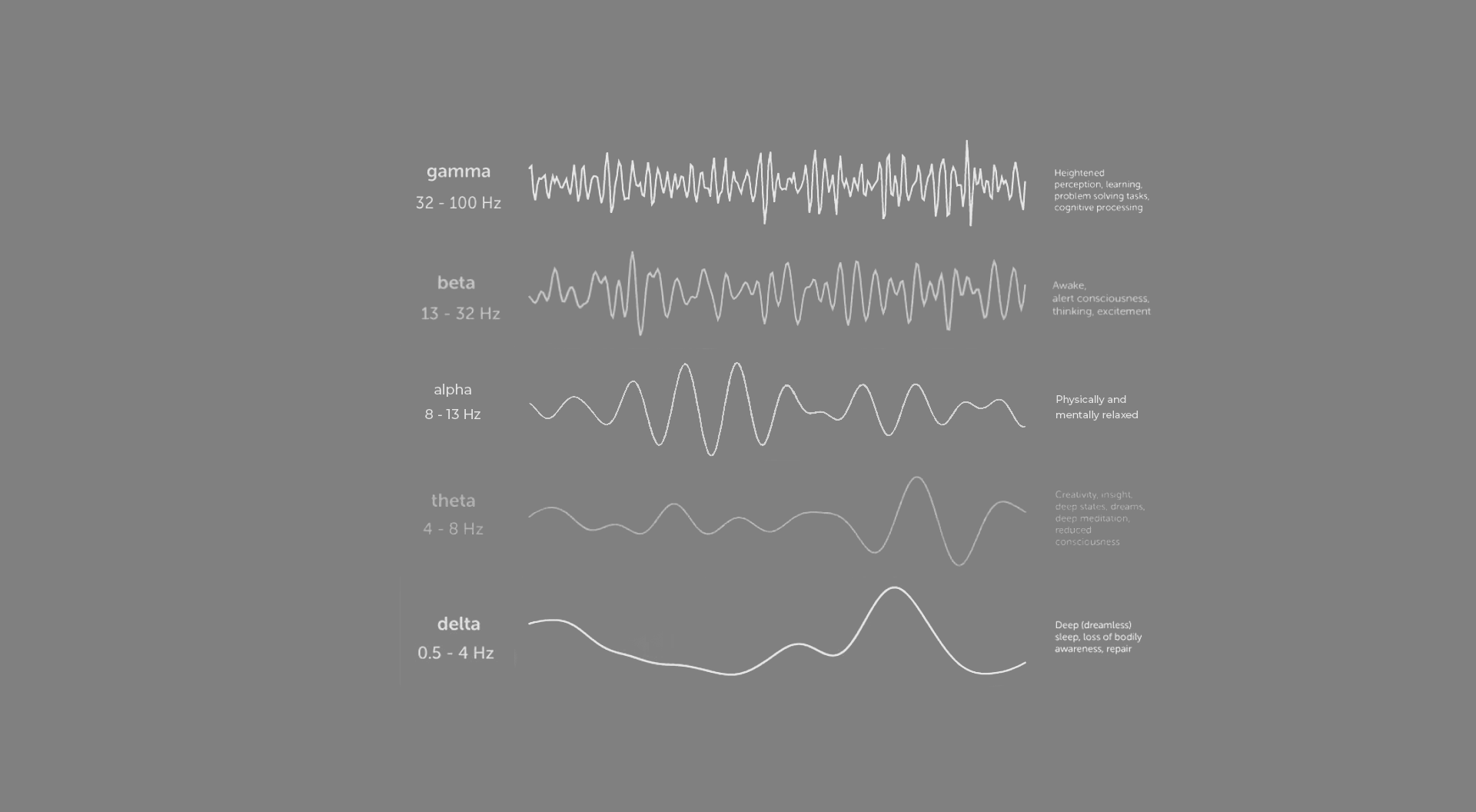 Gamma waves (30–100 Hz): peak mental performance, heightened awareness.